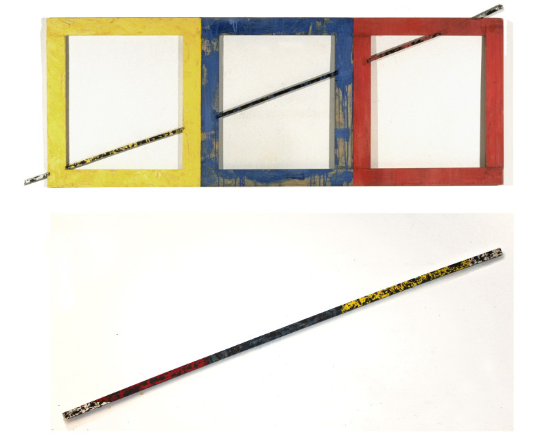In 1990 a piece entitled "Sky made in California" starts a partial return in her artistic work to the plane created by the division between the free form and the form defined by the right angle.